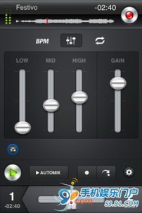 混合,或啟用Automix模式,讓djay自動從你的iPod圖書館混合出您最喜愛的節奏!