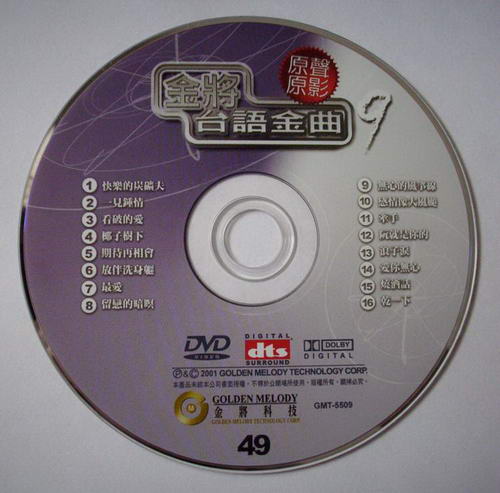 金將台語金曲原聲原影KTV DVD(九) (dvd一片裝)