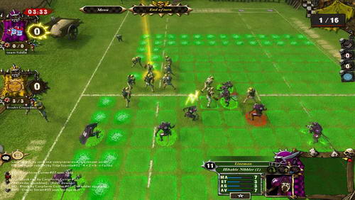 四種動作:移動、阻擋、衝撞、傳球。這些是橄欖球基本的規則,不過本作加入了六個種族後就變